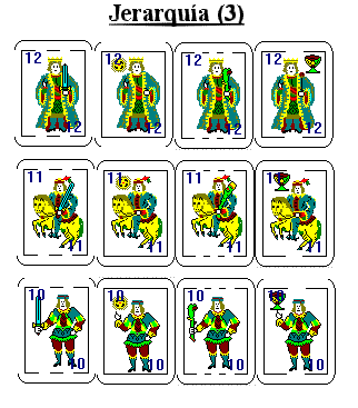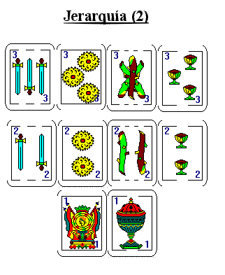 Desde al As de Espadas (carta de mayor valor) hasta los cuatro (ya sea de espada, oro, basto o copas).